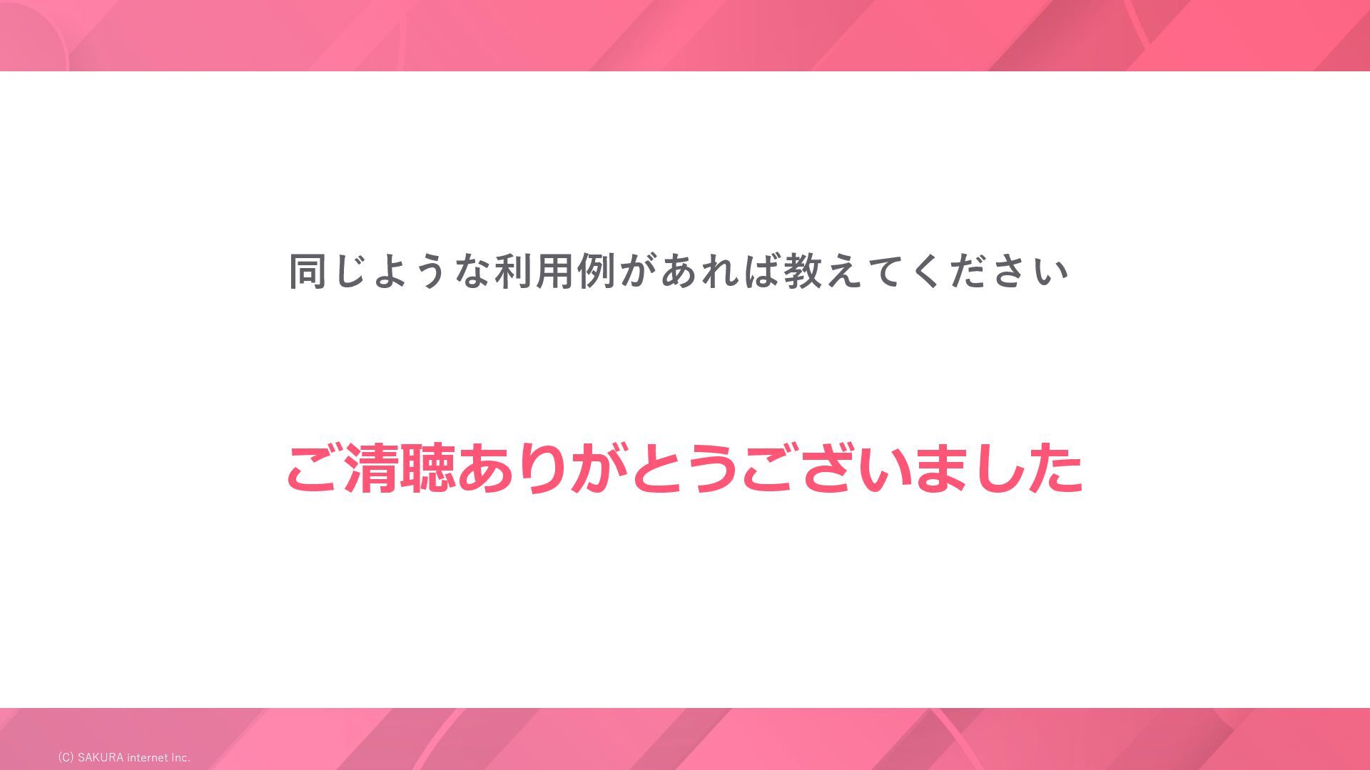 (C) SAKURA internet Inc. (C) SAKURA internet Inc. ご清聴ありがとうございました 同じような利用例があれば教えてください