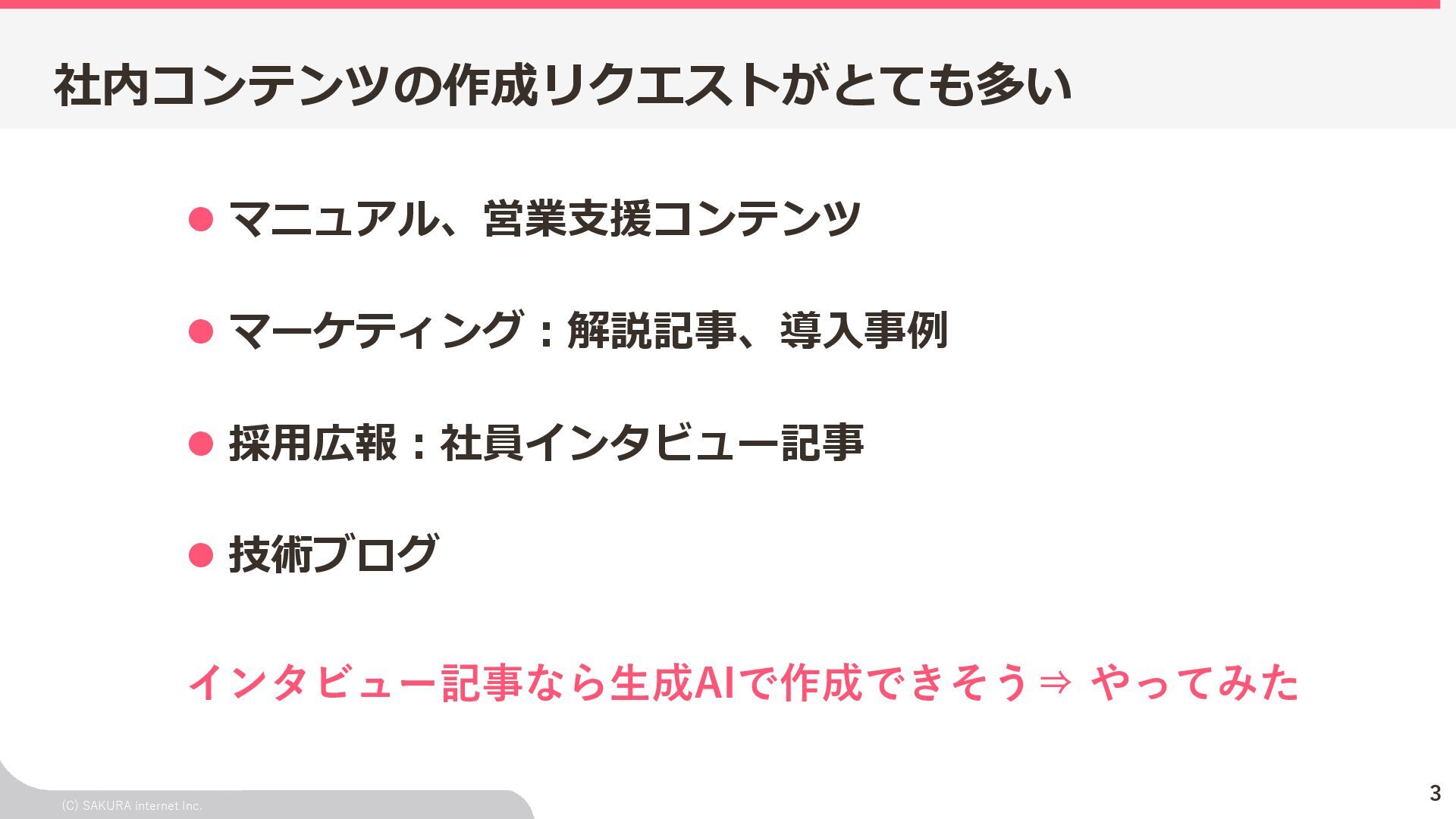 (C) SAKURA internet Inc. (C) SAKURA internet Inc. 3 社内コンテンツの作成リクエストがとても多い