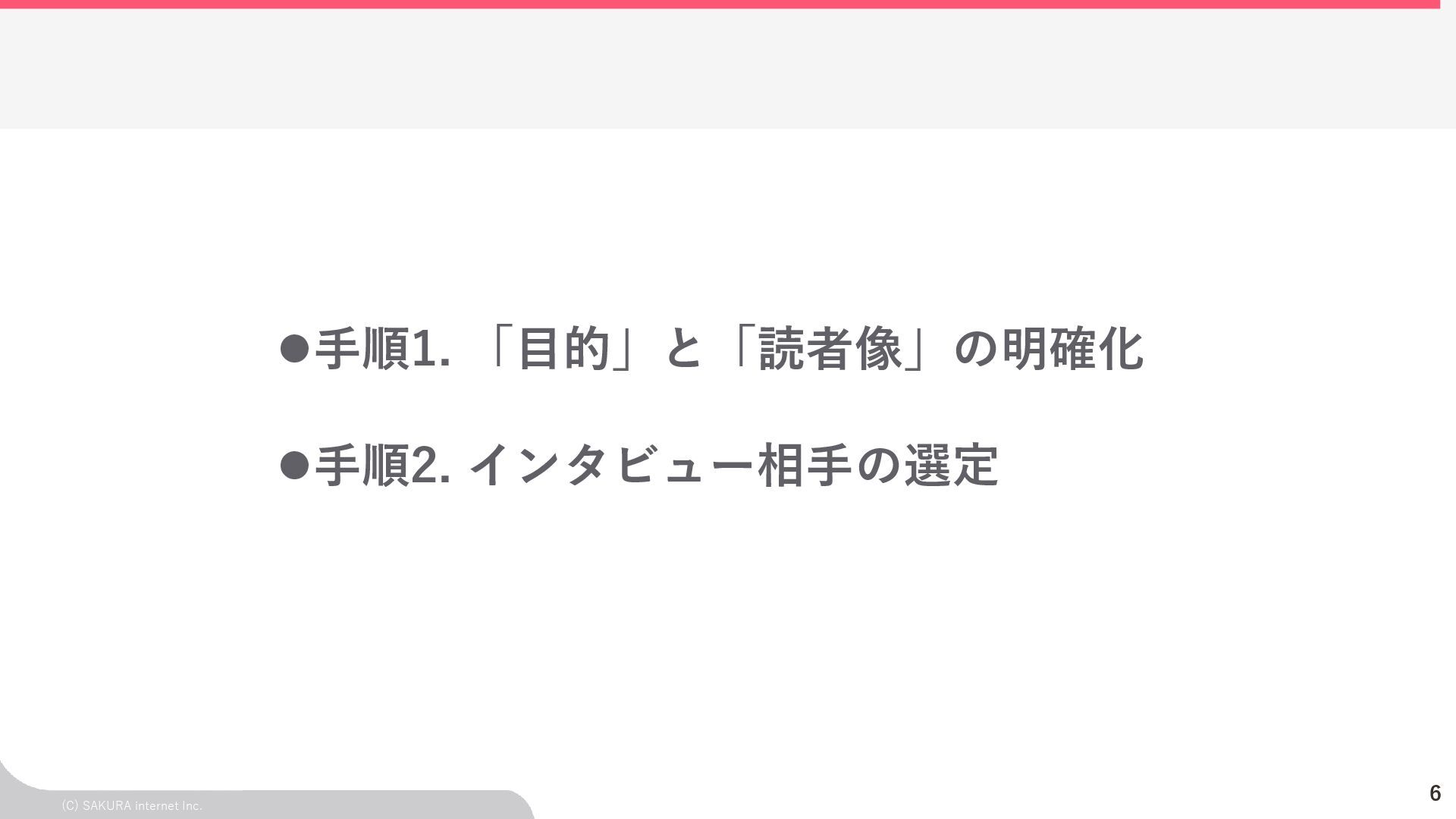 「目的」と「読者像」の明確化 ⚫手順2. インタビュー相手の選定