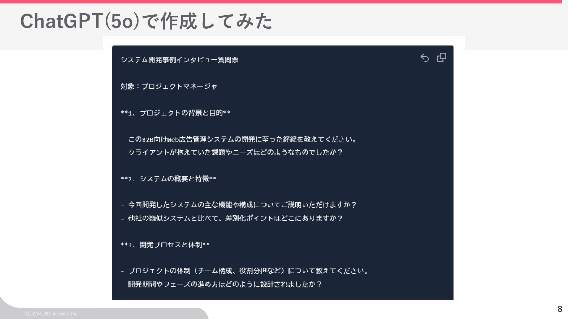 (C) SAKURA internet Inc. (C) SAKURA internet Inc. 8 ChatGPT(5o)で作成してみた