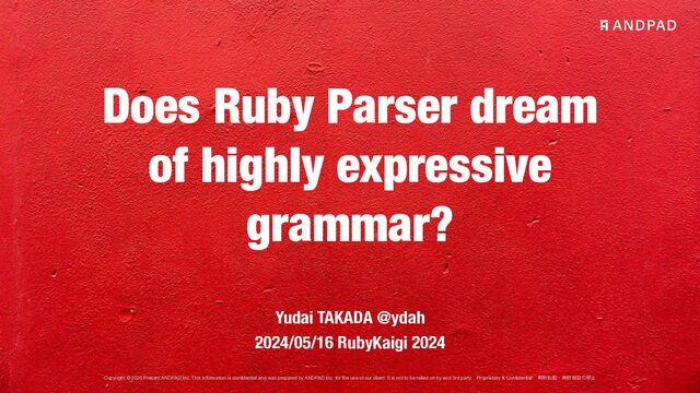 RubyKaigi 2024 「Does Ruby Parser dream of highly expressive grammar?」の発表スライド