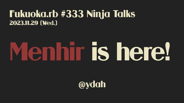 Fukuoka.rb #333 Ninja Talk 大会『Menhir is here!』のスライド