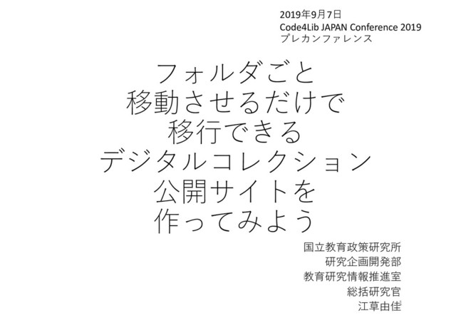 ! " # 1 201997 Code4Lib JAPAN Conference 2019