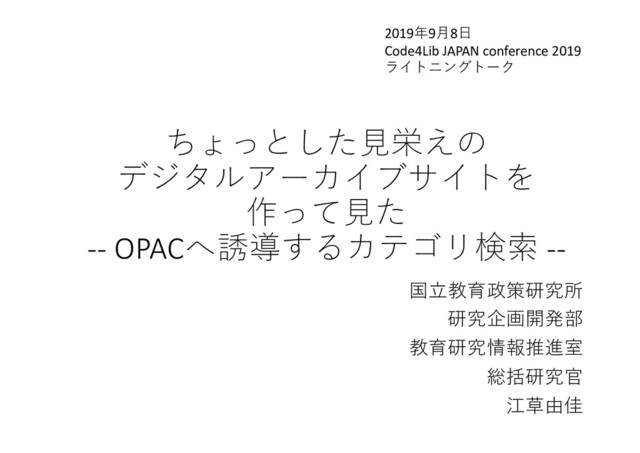 % !" # $ 2019 98 Code4Lib JAPAN conference 2019