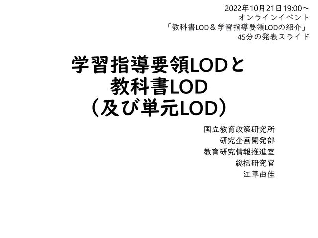 2022年10月21日19:00~ オンラインイベント 「教科書LOD&学習指導要領LODの紹介」 45分の発表スライド