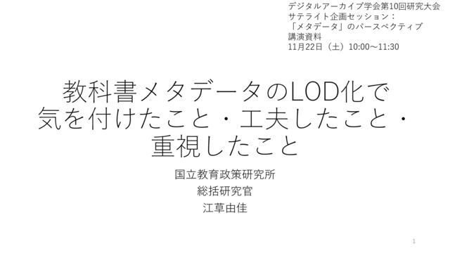 タイトル:教科書メタデータのLOD化で気を付けたこと・工夫したこと・重視したこと