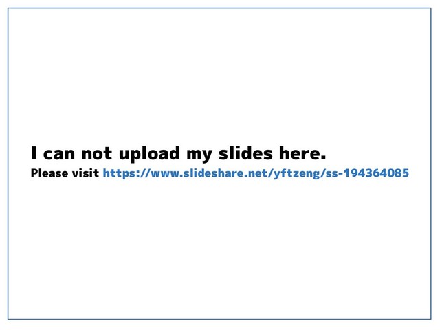 I can not upload my slides here. Please visit https://www.slideshare.net/yftzeng/ss-194364085