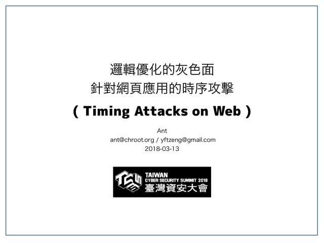 邏輯優化的灰色面 針對網頁應用的時序攻擊 ( Timing Attacks on Web ) Ant