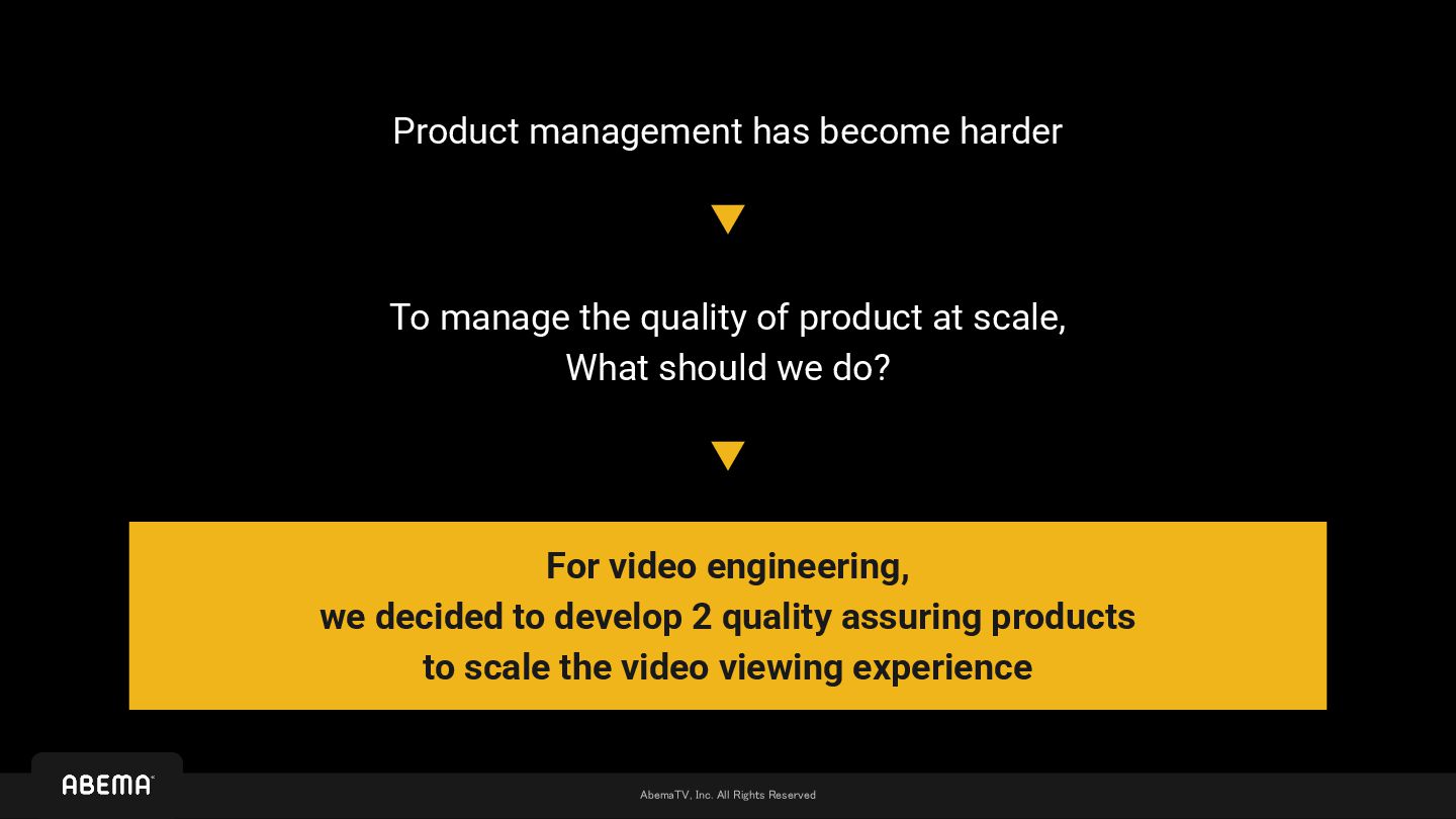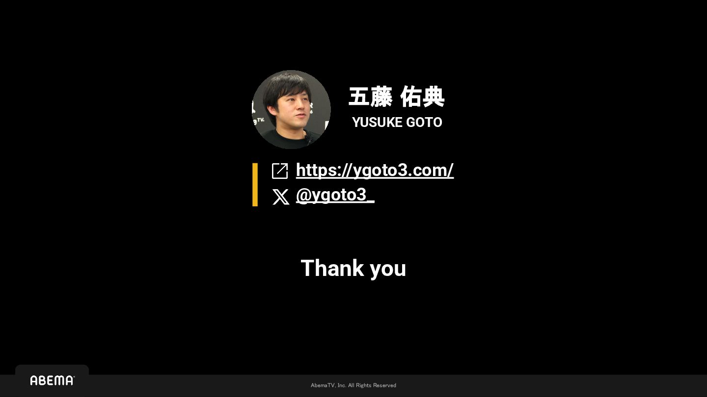 This presentation describes how AbemaTV engineers develop their video apps with limited resources while ensuring software quality, against the scale of ABEMA's expanding business model.