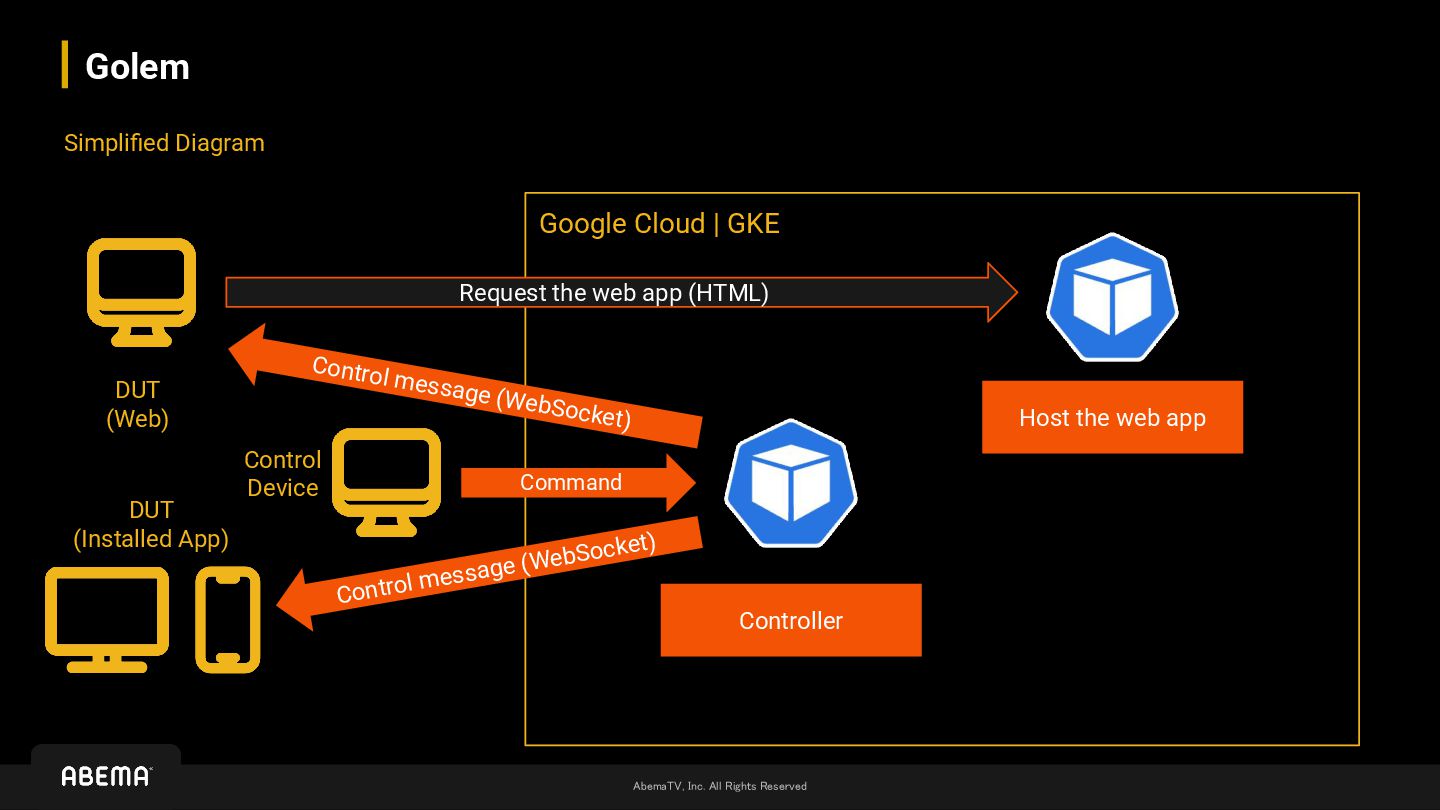 Simplified Diagram Request the web app (HTML) Command Control message (WebSocket) Control message (WebSocket) Host the web app Controller DUT (Web) DUT (Installed App) Control Device
