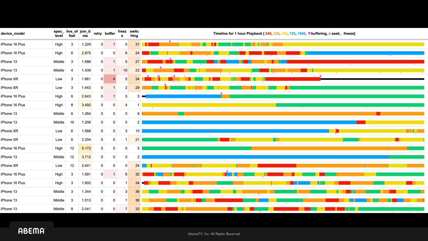 • The content of partner streams remains unknown until the systems are fully integrated ◦ Of course, general specifications are clear, but the actual output can only be determined after actual encoding ◦ Plus, even if we can receive feeds in advance, there was no mechanism to actually test the viewing experience until the integration • ABEMA maintains 22 reference devices as testbeds, with validation based on whether these devices pass at least 2-hour aging tests ◦ 2 hours * 22 devices * 3 viewing modes = 132 hours are required to perform aging tests ◦ At that time, aging testing was performed manually by human observation