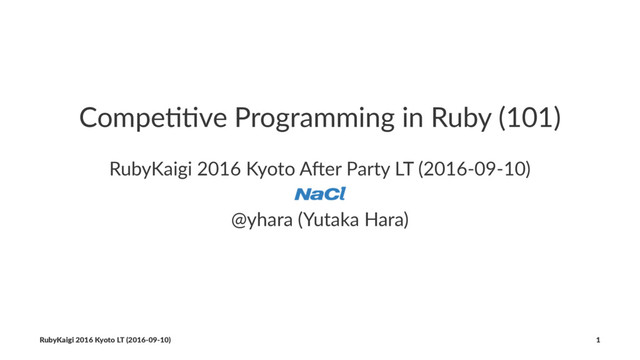 Compe&&ve Programming in Ruby (101) RubyKaigi 2016 Kyoto A1er Party