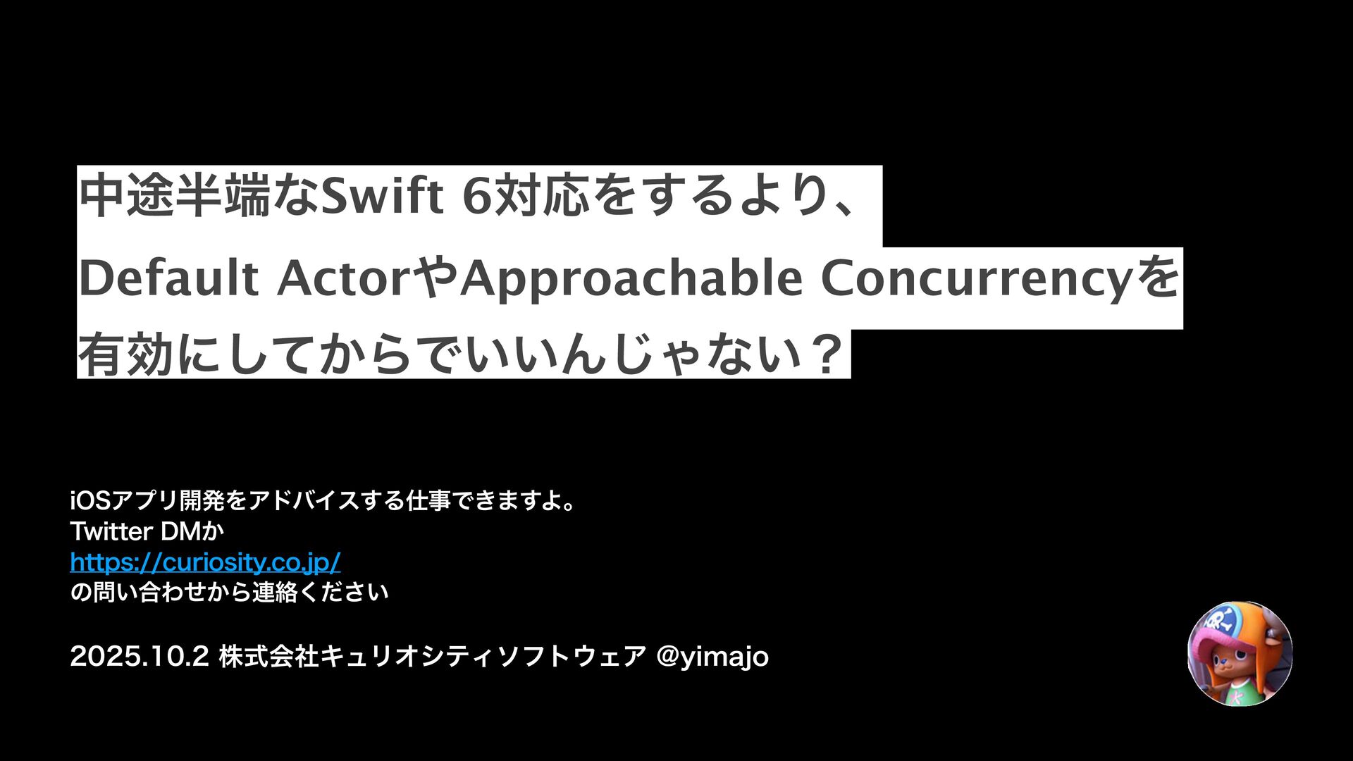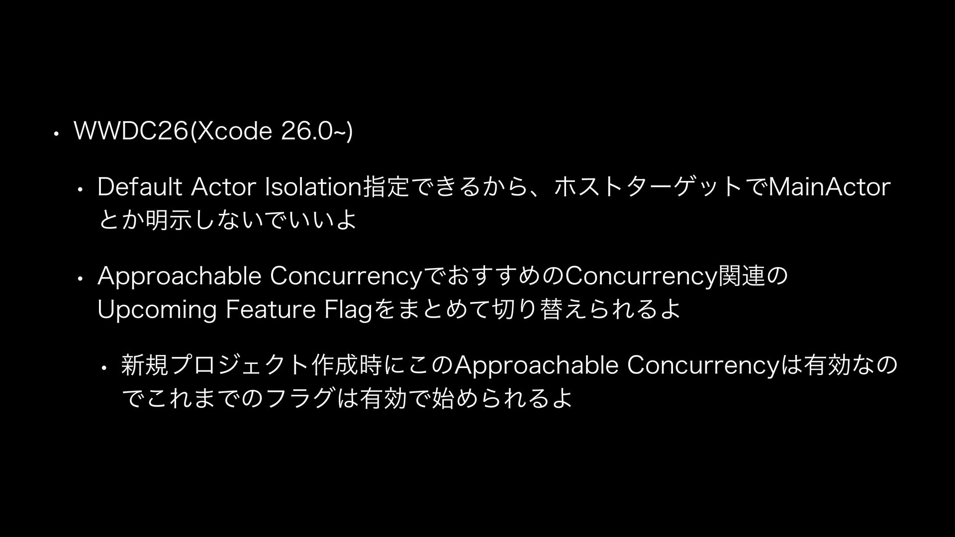 いま中途半端なSwift 6対応をするより、Default ActorやApproachabl...