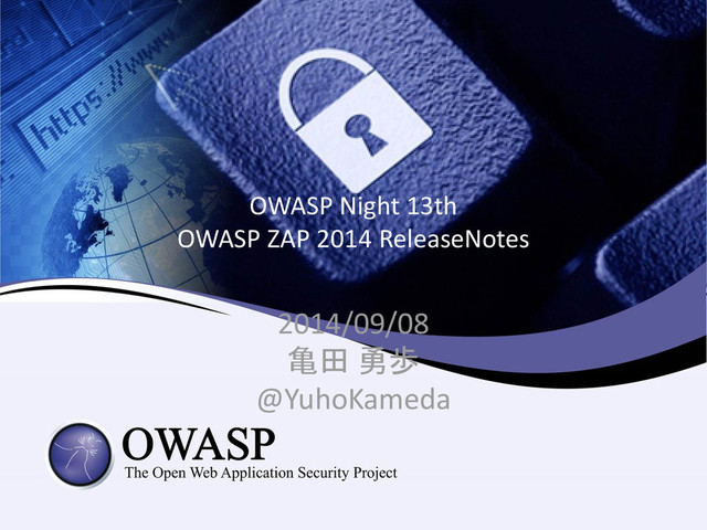 OWASP Night 13th OWASP ZAP 2014 ReleaseNotes 2014/09/08 亀田 勇歩