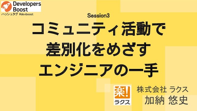 エンジニアの市場価値は、技術的スキルをはじめ、マネジメントスキルや、コミュニケーションスキルなど様々な要素で決まり、近年では、勉強会や技術イベントなどのコミュニティで活動していることも重視されるようになっています。 エンジニアとしての価値を生み出す方法が多数ある中で、若手のエンジニアにとって、コミュニティに参加し、勉強会や技術イベントでの活動を武器とすることが、自身のキャリアにどのような影響をあたえるのか。コードを書く以外の方法によるエンジニアの価値の生み出し方について、自身の経験を元にお話しできればと思います