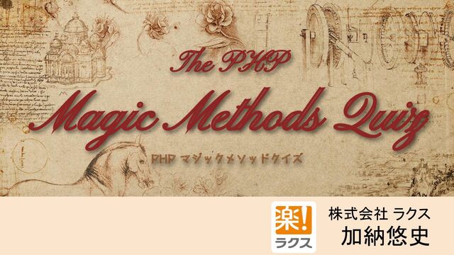 PHPに存在する "魔法のような" メソッド「マジックメソッド」。 普段はあまり気にしなくても、フレームワークやライブラリのコードを読むときに、見慣れないメソッドが出てきて処理を追う手が止まってしまったことはありませんか? 一つ上のPHPerになるために、これを機にマジックメソッドについての理解を深めましょう!! 本セッションではいくつかのマジックメソッドについて、クイズ形式でその効果や利用方法を説明します。