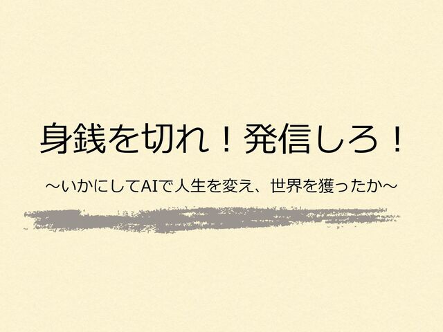 身銭を切れ!発信しろ!〜いかにしてAIで人生を変え、世界を獲ったか〜