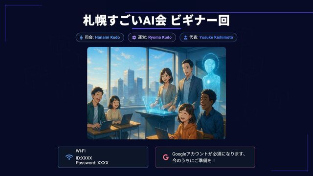 札幌すごいAI 会 ビギナー回 司会: Hanami Kudo 運営: Ryoma