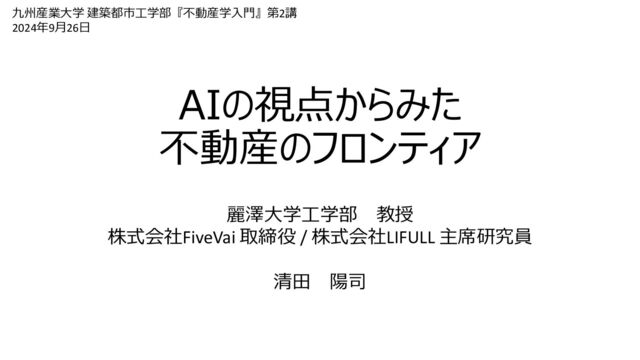 AIの視点からみた不動産のフロンティア / Frontiers of Real Estate from the Perspective of Artificial Intelligence
