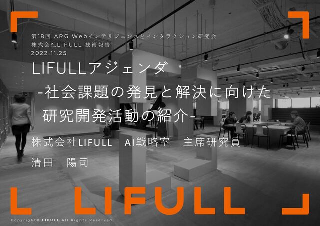 福岡県⽣まれ 2004年 京都⼤学⼤学院情報学研究科 博⼠課程修了 2004-2012年 東京⼤学情報基盤センター 助⼿・助教・特任講師 2007-2011年 株式会社リッテル 上席研究員・取締役CTO 2011年 株式会社LIFULL 主席研究員(バイアウト) 関⼼分野: ⾃然⾔語処理応⽤ → 検索・推薦 → 情報リテラシー (図書館) → ⽣活領域 (不動産、介護 etc.)、産学連携 主な対外的活動 • ⼈⼯知能学会 理事/編集委員⻑ (2020.6〜2022.6) • 情報科学技術協会(INFOSTA)理事 (2020.6〜) 会⻑ (2022.7〜) • 情報処理学会データベースシステム研究会 運営委員 (2020.4〜) • 情報処理学会 ユビキタスコンピューティング研究会 幹事 (2020.4〜)