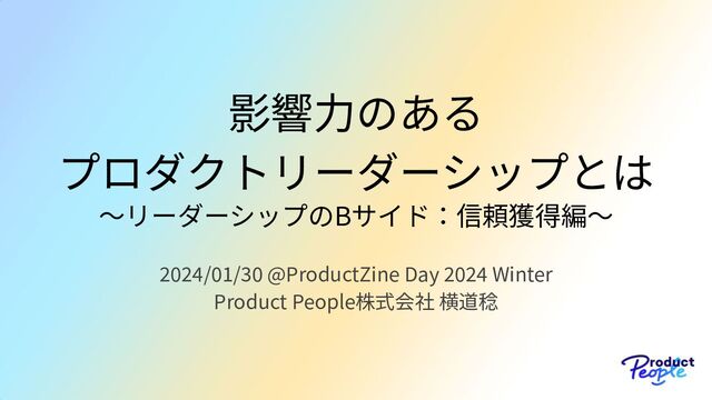 影響⼒のある プロダクトリーダーシップとは 〜リーダーシップのBサイド:信頼獲得編〜 2024/01/30 @ProductZine Day 2024 Winter Product People株式会社