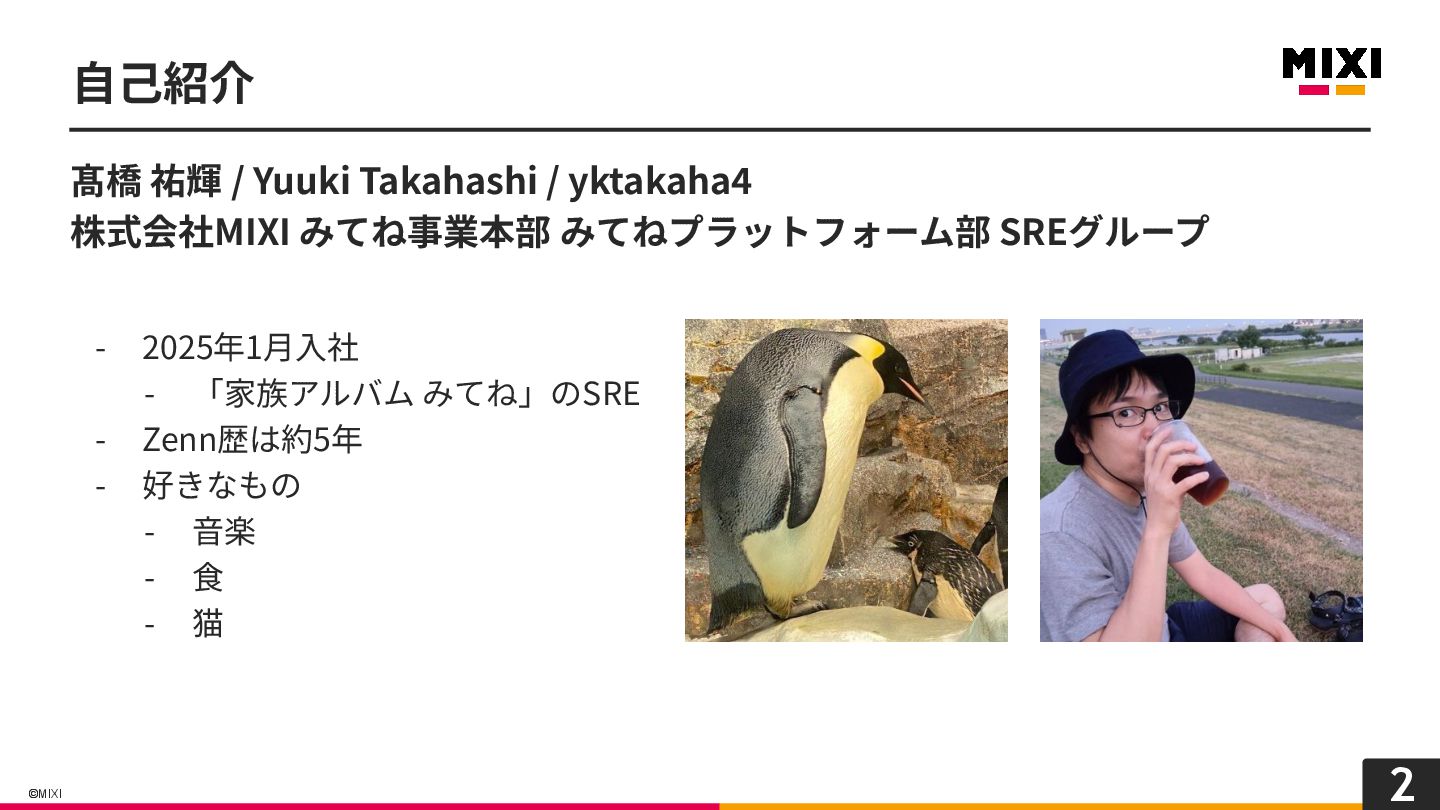 2 ©MIXI - 2025年1⽉⼊社 - 「家族アルバム みてね」のSRE - Zenn歴は約5年 -