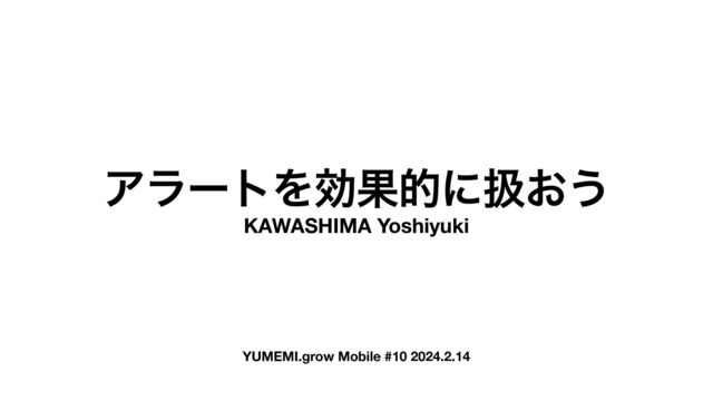 YUMEMI.grow Mobile #10 2024.2.14 ΞϥʔτΛޮՌతʹѻ͓͏ KAWASHIMA Yoshiyuki