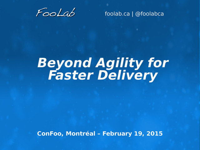 In this presentation, Yann Larrivée will show you how you can improve your team performance by using some of the core concept of Agility. Additional technics will be presented to help fill-in the gaps left by Agility.