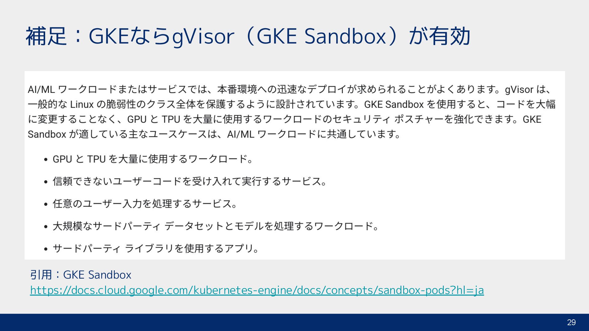 https://docs.cloud.google.com/kubernetes-engine/docs/concepts/sandbox-pods?hl=ja