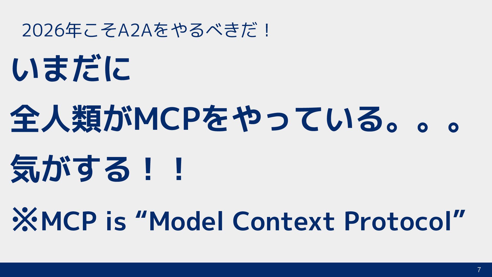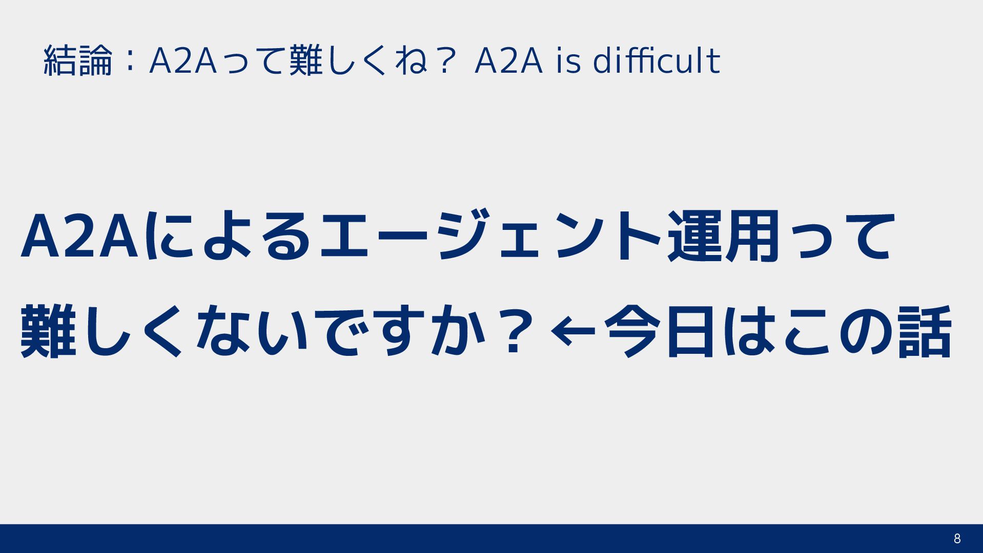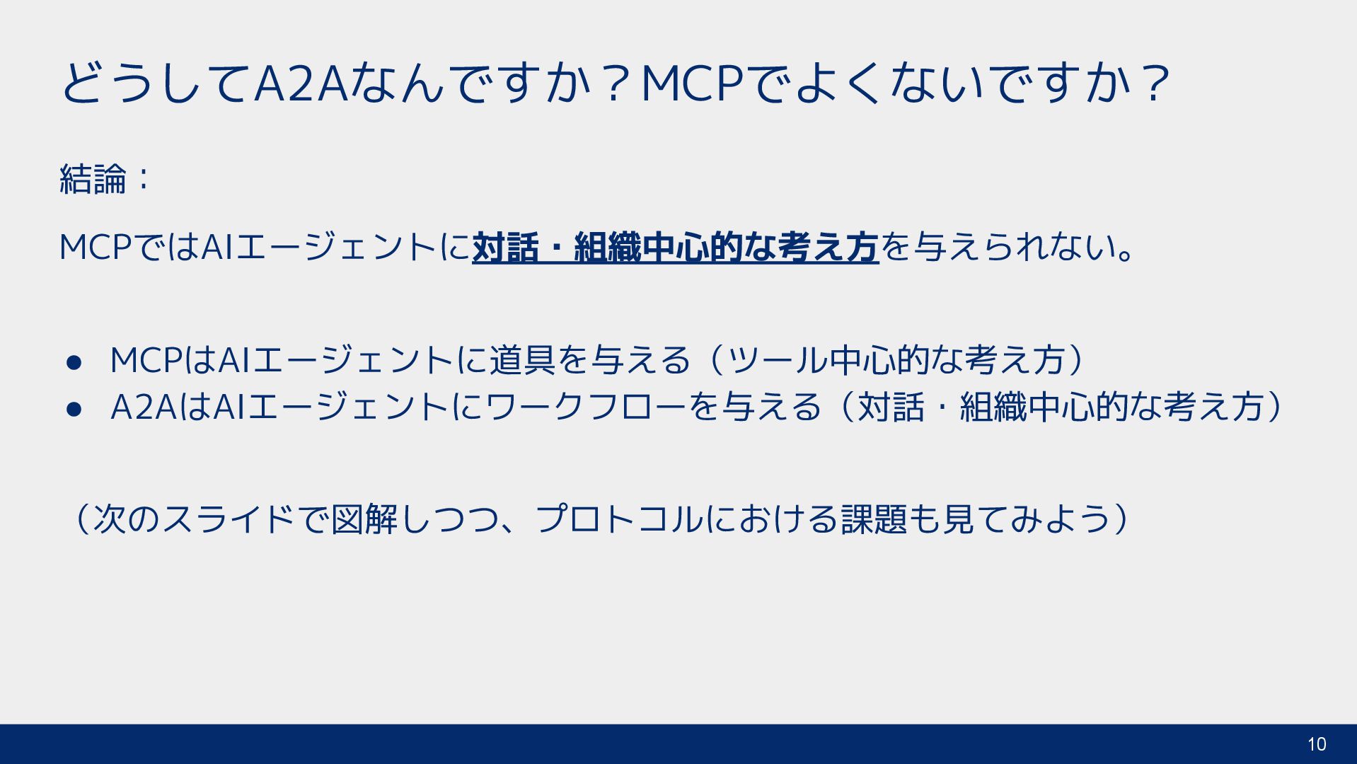 A2Aについて解説しつつ、A2Aを使ったアプリケーションを提供するにはどうすれば良いか説明しました。