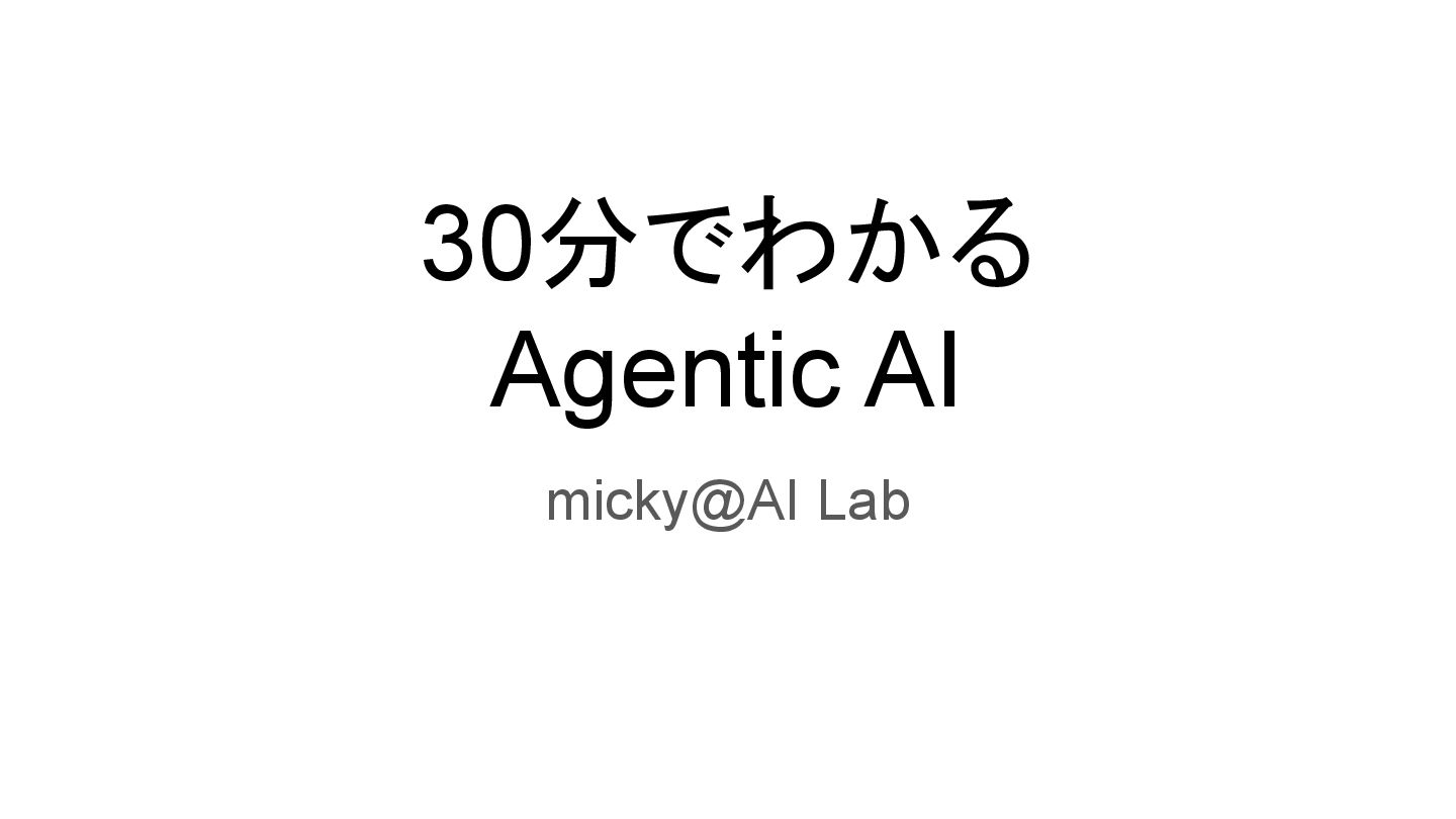 30分でわかる Agentic AI micky@AI Lab