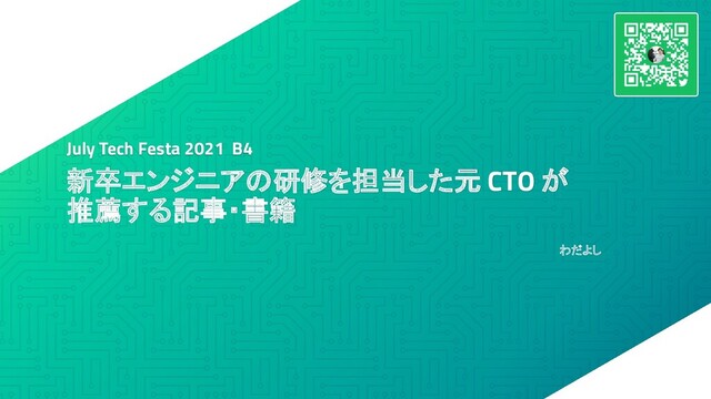 新卒エンジニアの研修を担当した元 CTO が 推薦する記事・書籍 July Tech Festa 2021 B4 わだよし
