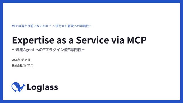 Expertise as a Service via MCP a 〜汎用Agent への"プラグイン型"専門性〜 MCPは当たり前になるのか?