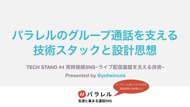 TECH STAND #4 常時接続SNS~ライブ配信基盤を支える技術~の発表資料です。