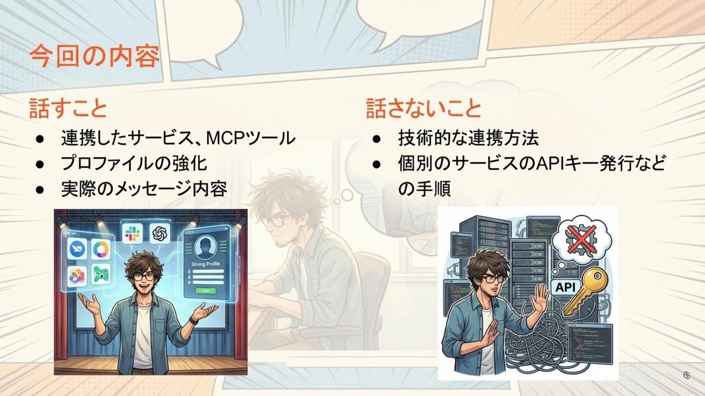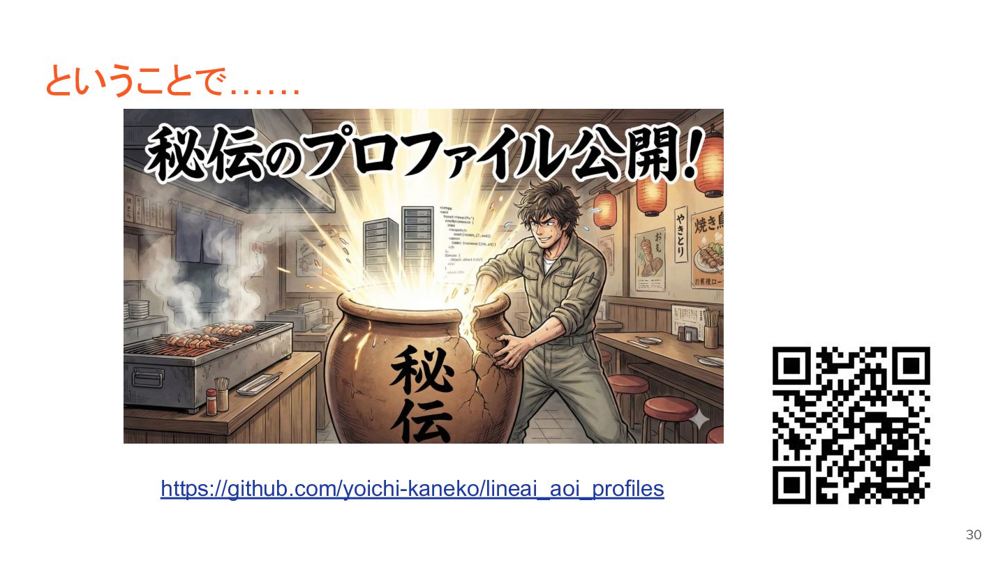 該当のイベントページはこちら: https://nextfreelance.connpass.com/event/385177/ 発表で使用しているGithubリポジトリはこちら: https://github.com/yoichi-kaneko/lineai_aoi_profiles