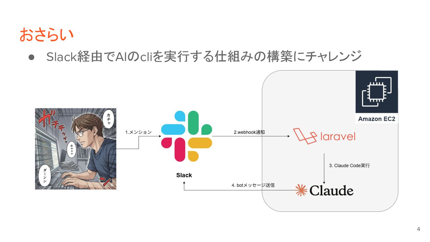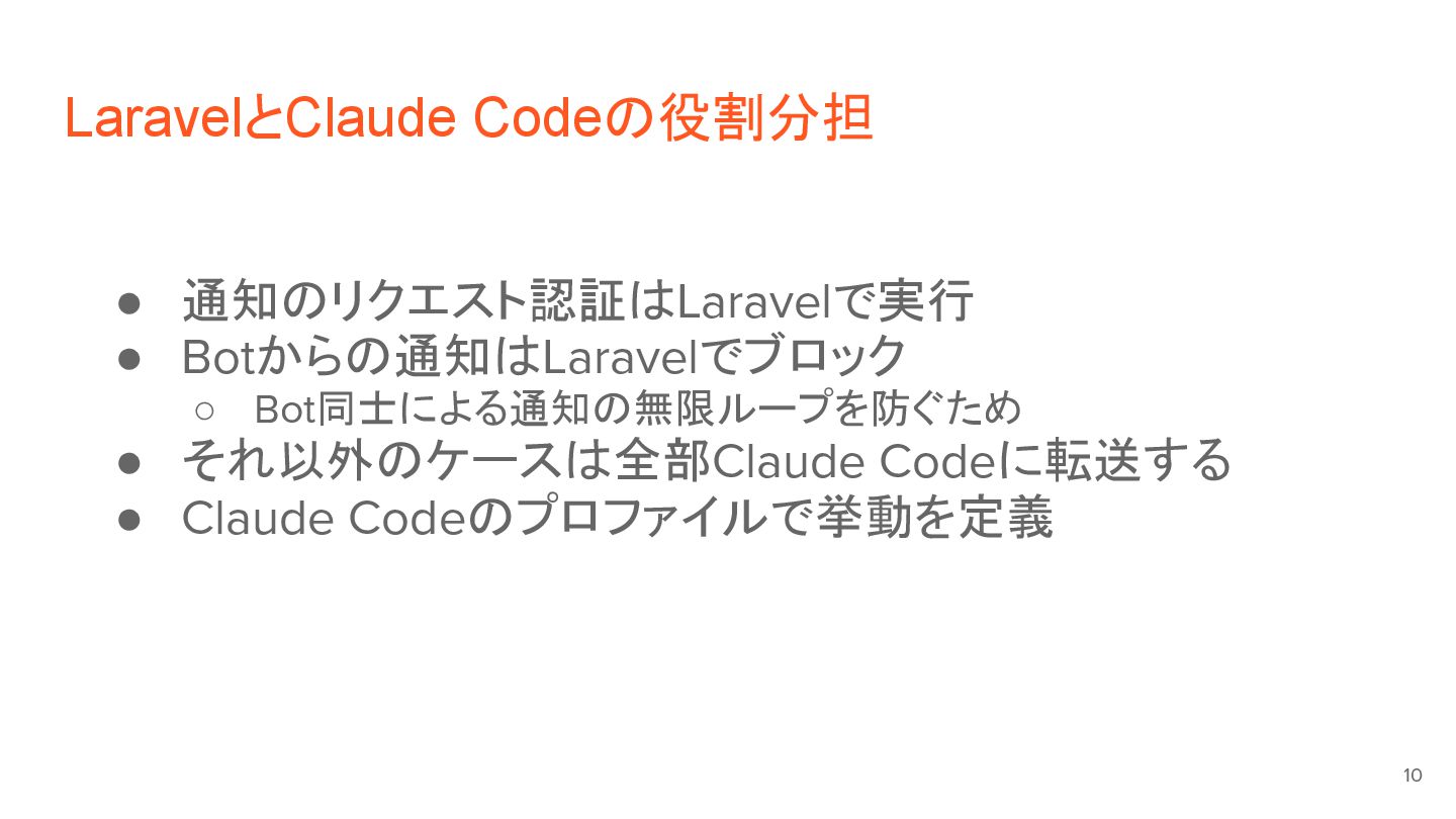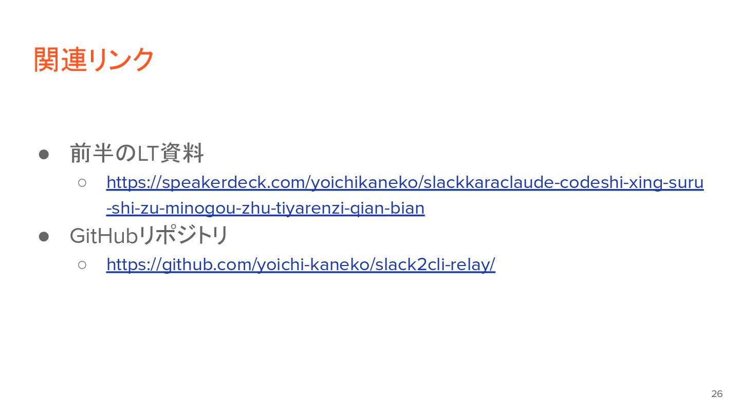 前半のLT資料はこちら: https://speakerdeck.com/yoichikaneko/slackkaraclaude-codeshi-xing-suru-shi-zu-minogou-zhu-tiyarenzi-qian-bian
