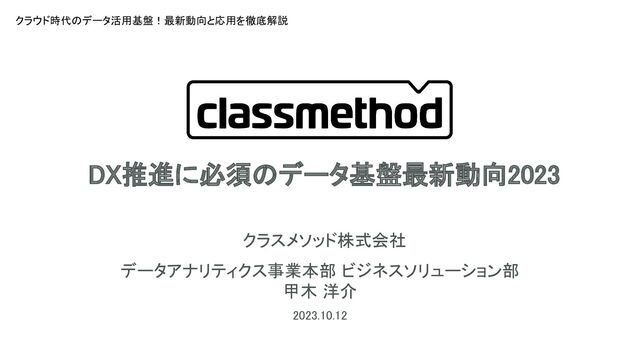 2023.10.12開催ウェビナー 「クラウド時代のデータ活用基盤!最新動向と応用を徹底解説」にて発表