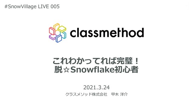Snowflakeの初級ハンズオンや数多くのブログ記事を公開しているクラスメソッドの最前線で活躍する甲木さんからSnowflakeの基本をたっぷり裏話まで聞いちゃいます!