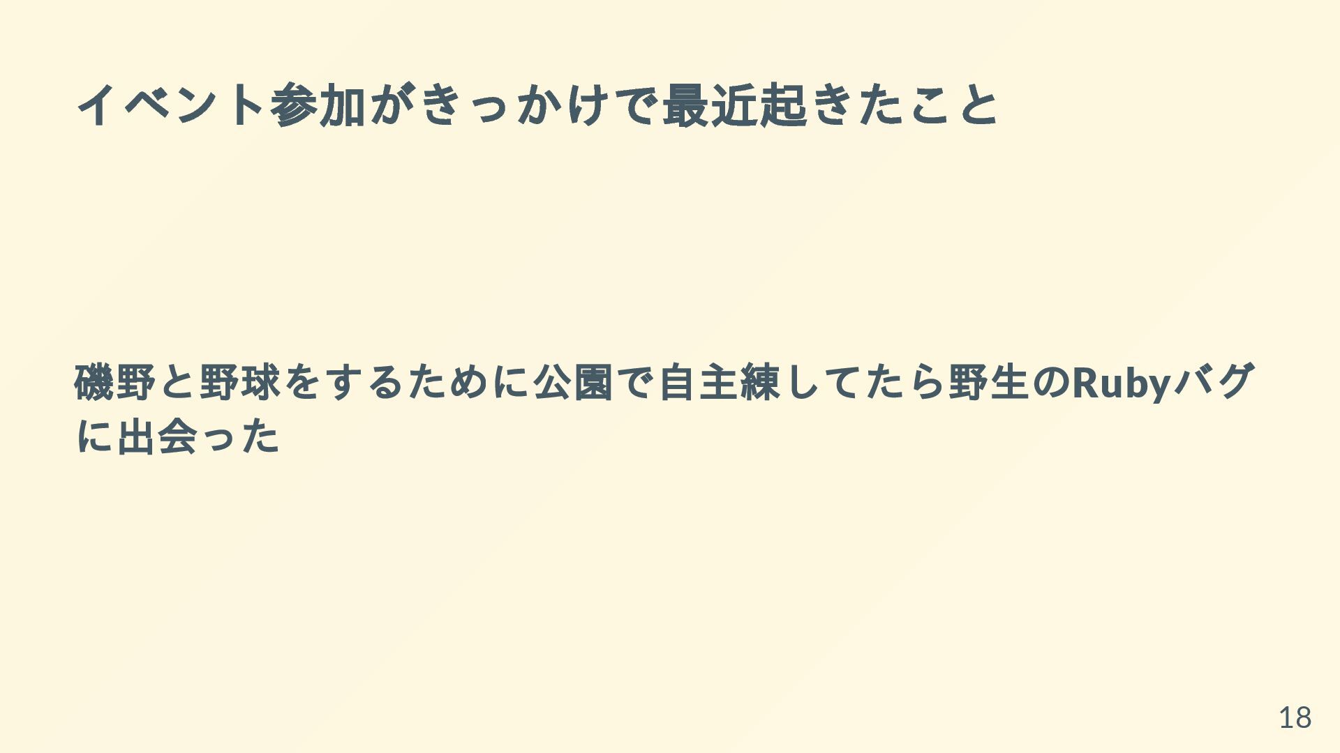 イベント参加がきっかけで最近起きたこと 磯野と野球をするために公園で自主練してたら野生のRuby バグ に出会った 18