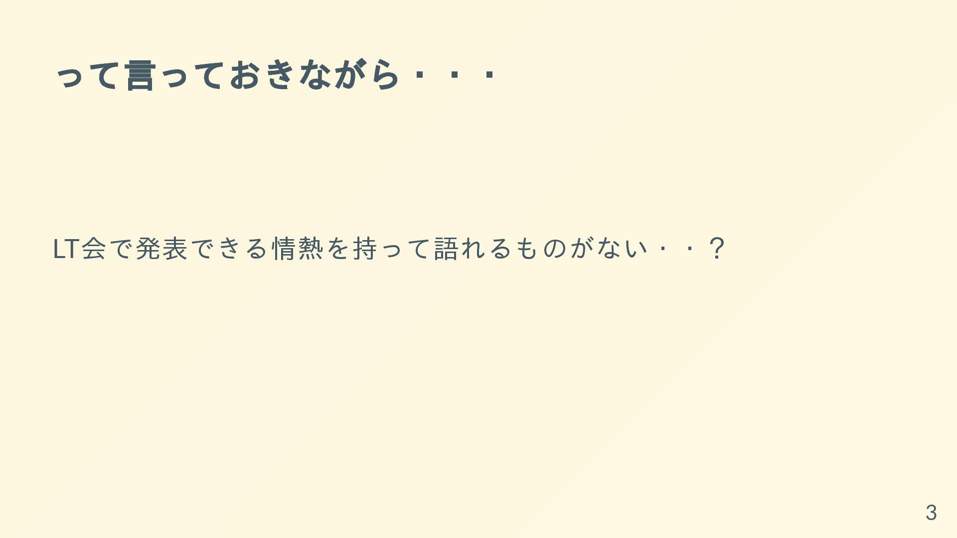 って言っておきながら・・・ LT会で発表できる情熱を持って語れるものがない・・? 3
