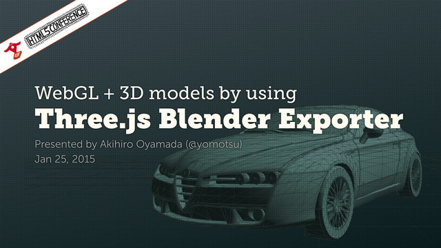THREE.Clock(), scene, camera, renderer, ambientLight, directionalLight, loader, alfaromeo = new THREE.Object3D(); ! scene = new THREE.Scene(); ! camera = new THREE.PerspectiveCamera( 40, width / height, 1, 1000 ); camera.position.set( 0, 1, 5 ); ! renderer = new THREE.WebGLRenderer( { antialias: true } ); renderer.setSize( width, height ); document.body.appendChild( renderer.domElement ); write code as usual