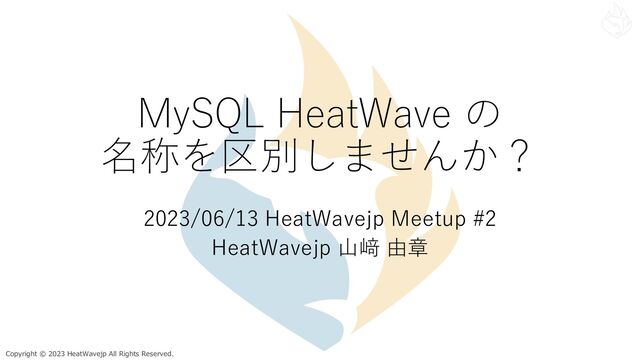 Autopilotに関しては、できる限りMySQL Autopilotという 名称を避け、各機能の名称を使⽤する • Auto Provisioning • Auto Parallel Loading • Auto Data Placement • Auto Encoding • Auto Error Recovery • Auto Scheduling • Auto Change Propagation • Auto Query Time Estimation • Auto Query Plan Improvement ・・・などなど 参考:オラクル、MySQL HeatWaveサービス向けのMySQL Autopilotを発表 (この発表以降も、MySQL Autopilotに機能が追加されています) https://www.oracle.com/jp/news/announcement/mysql-autopilot-jp-20210811/