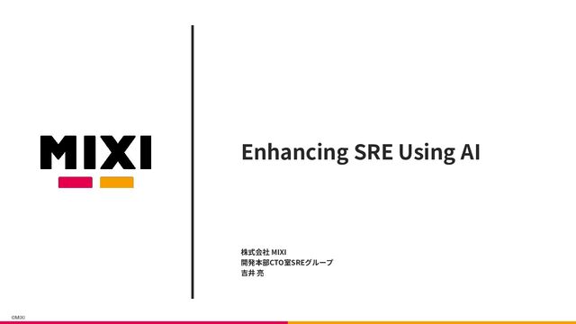 ©MIXI Enhancing SRE Using AI 株式会社 MIXI 開発本部CTO室SREグループ 吉井 亮