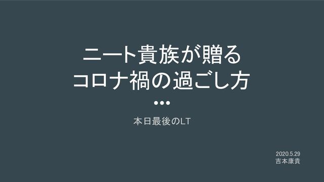 ニート貴族が贈る コロナ禍の過ごし方 本日最後のLT 2020.5.29 吉本康貴