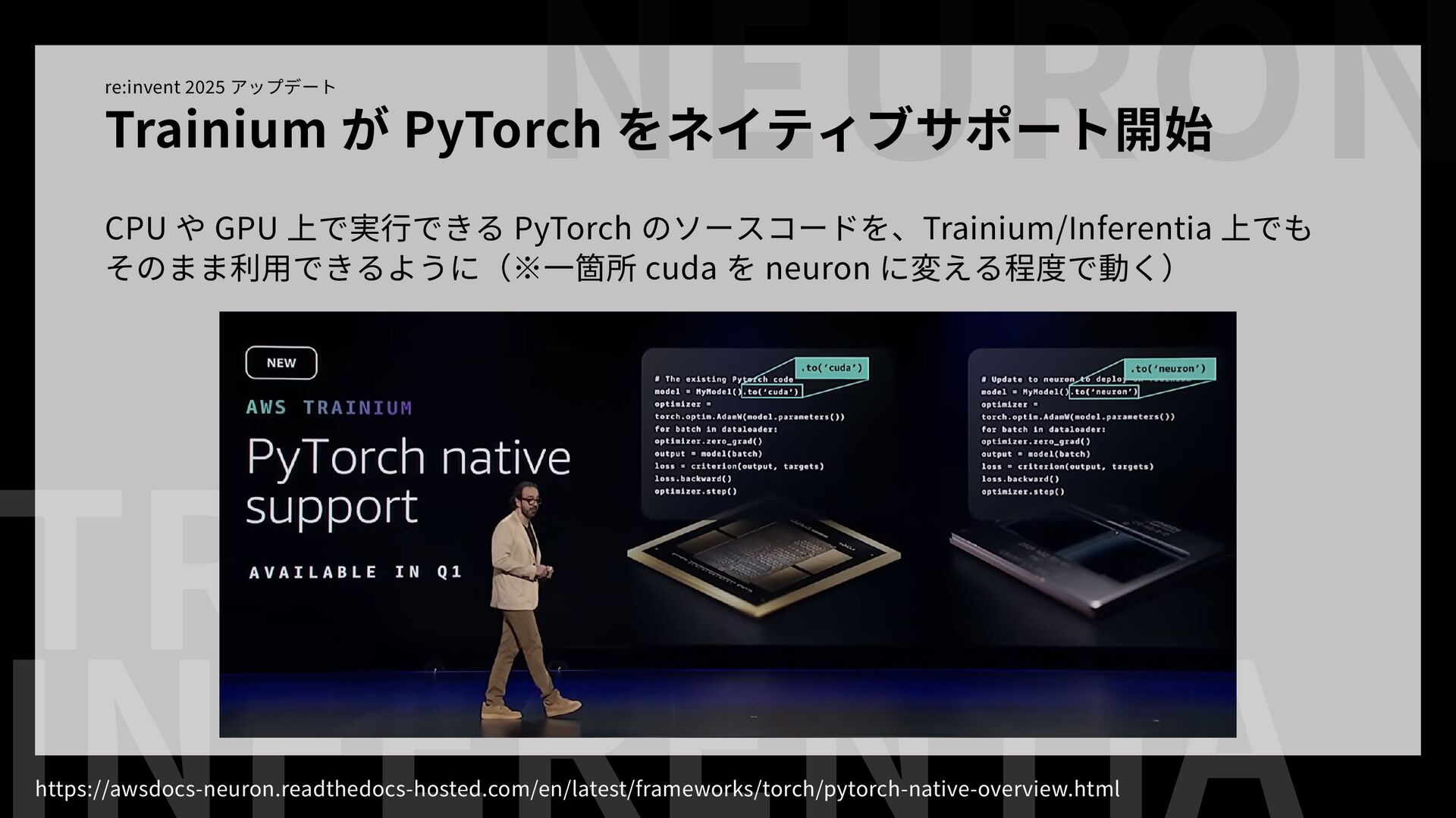 TRAINIUM NEURON Trainium が PyTorch をネイティブサポート開始 re:invent ���� アップデート CPU