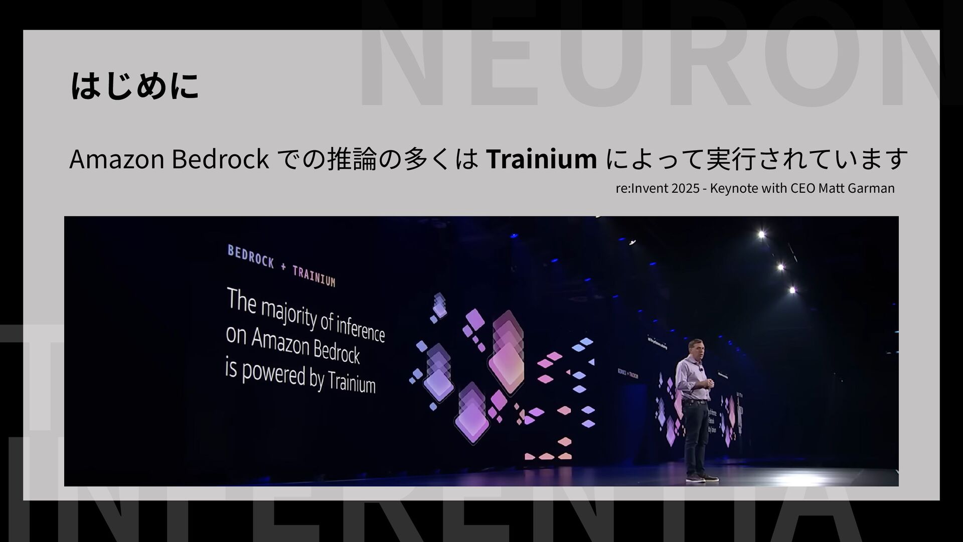 TRAINIUM NEURON はじめに re:Invent ���� - Keynote with CEO Matt