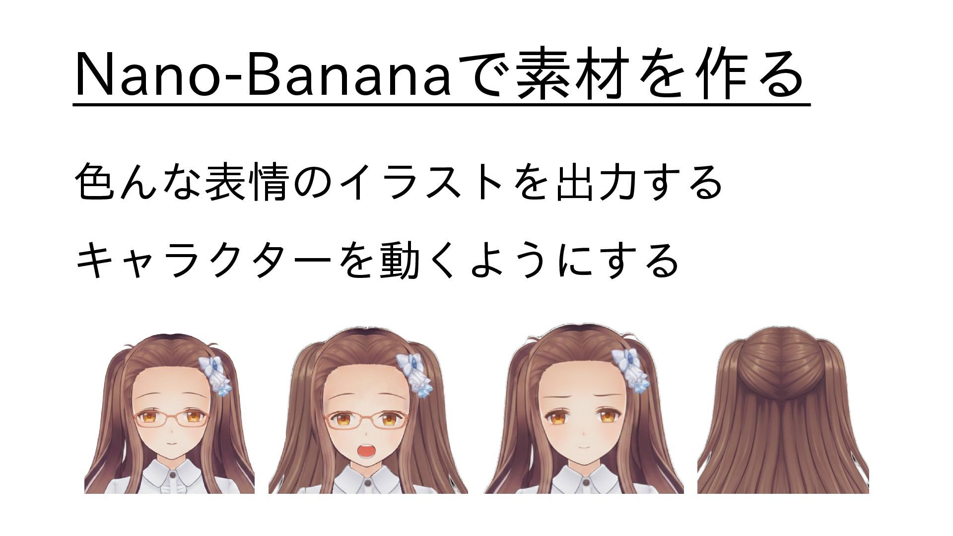 Nano-Bananaで素材を作る 色んな表情のイラストを出力する キャラクターを動くようにする