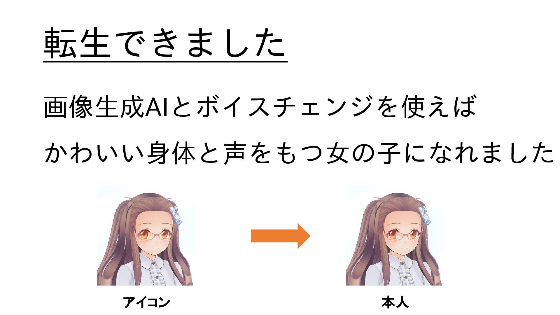 転生できました 画像生成AIとボイスチェンジを使えば かわいい身体と声をもつ女の子になれました アイコン 本人