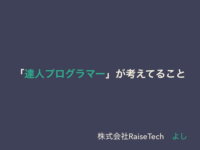 ʮୡਓϓϩάϥϚʔʯ͕ߟ͑ͯΔ͜ͱ גࣜձࣾRaiseTechɹΑ͠