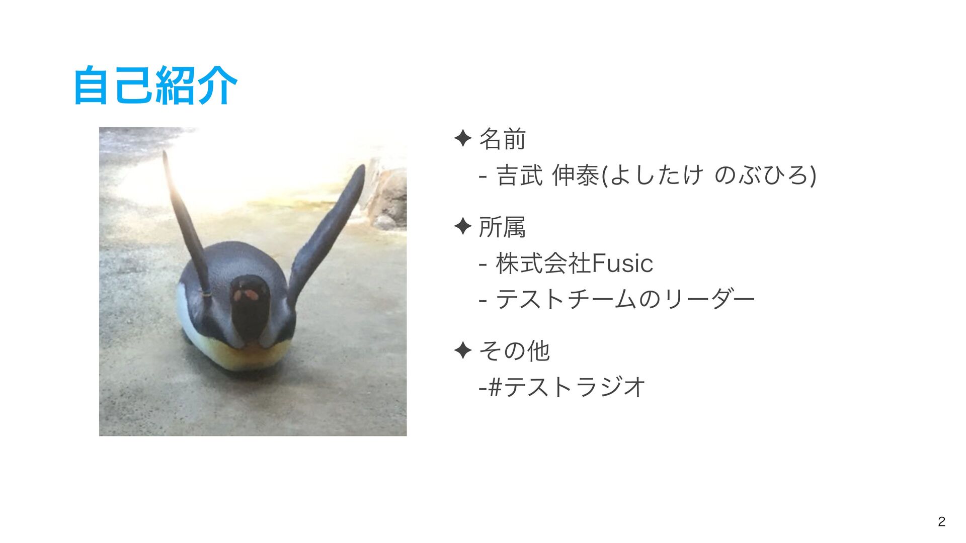 ࣗݾհ ✦ ໊લ ٢৳ହ Α͚ͨ͠ͷͿͻΖ ✦ ॴଐ גࣜձࣾ'VTJD